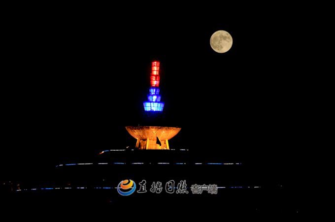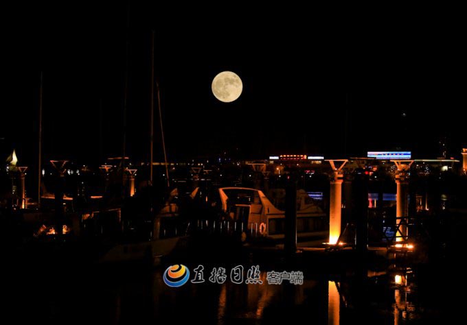 雾霾散去 日照现“超级月亮”(2015年10月28日)
