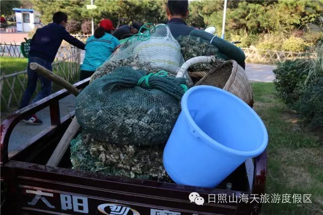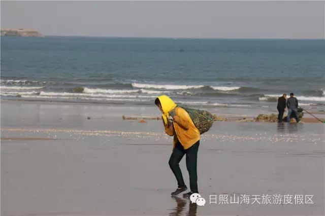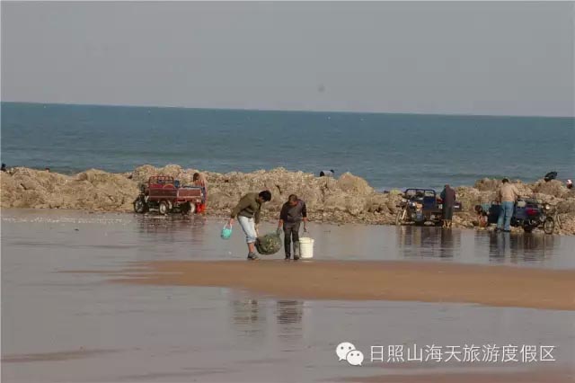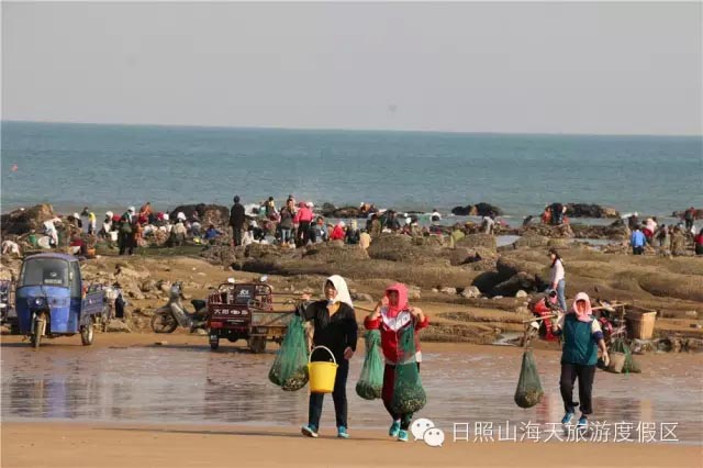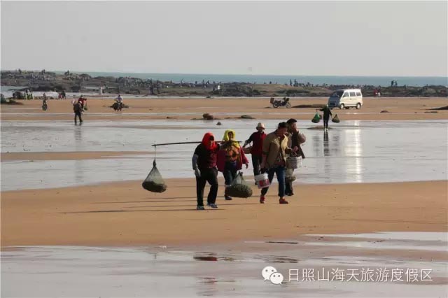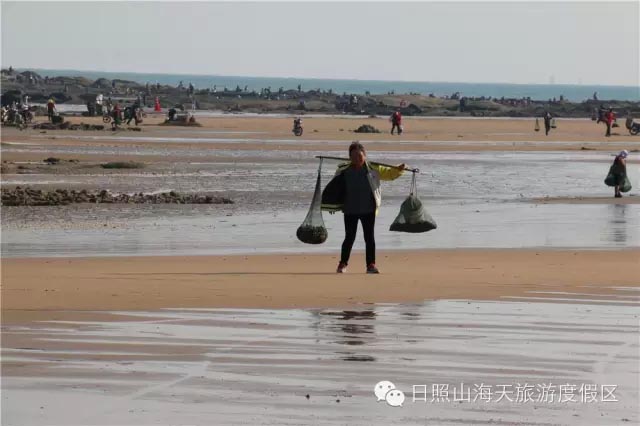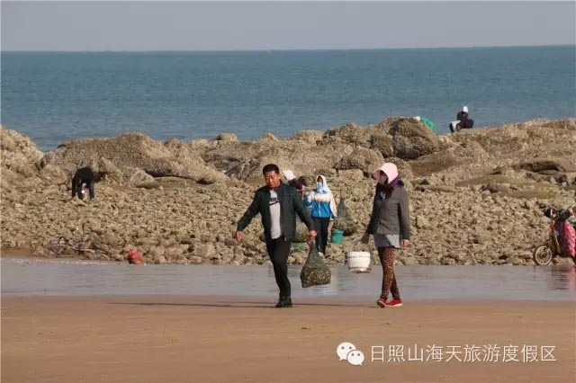 真是不得了了!山海天海边出了大事了!附近村民都出动了,男女老少,成群结队,千姿百态,场面如此壮观,到底怎么了? 咦?原来是退大潮! 据在阳光海岸赶海的渔民说,今天是退大潮,一年仅有那么几天很罕见的退特别大的潮,大片的礁石和海滩全部裸露出来了,拾不尽的牡蛎、蛤蜊、海虹、海螺、螃蟹、小螺丝....现场什么情况?请继续观看以下场景~ 挑着的 背着的 抬着的 推着的 用自行车驮着的 有三五成群的,互帮互助的 谁说赶海是女人的专利?男人们也都来啦! 还有夫妻版 女人捞了太多海货,男人来帮忙~ 情侣版~ 据说,一起赶海能增进情感呢~有木有? 看,这表情、这造型,也是醉了~ 满载而归喽~看看他们都收货了什么? 海螺和小螺丝 多的就是牡蛎啦,超鲜美~ 然还有海参?纯野生的哦~ 出发回家喽,走起~