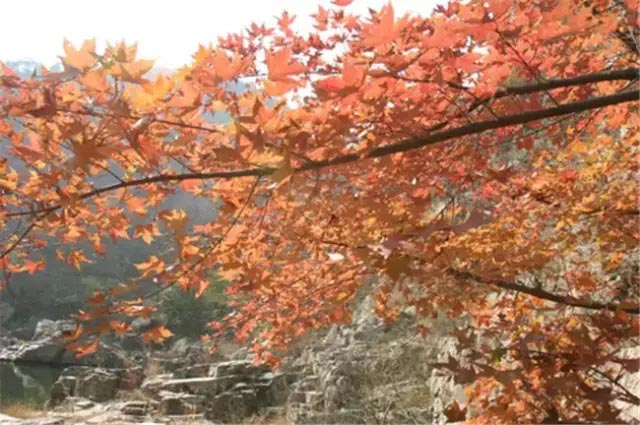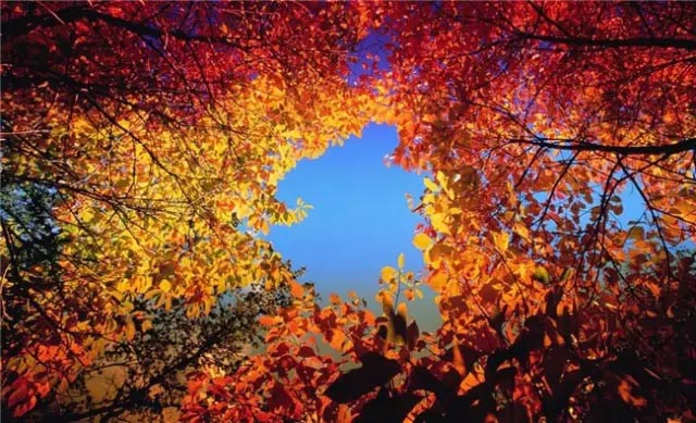 倘若是秋日遇见日照,她一定是羞涩的,羞得漫山叶子红遍,一团团红色环绕林间···
