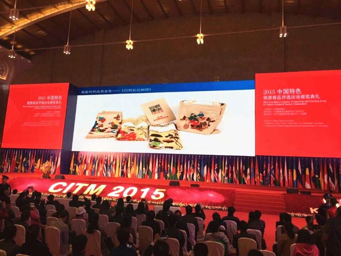 13日,2015中国特色旅游商品评选活动颁奖典礼在云南昆明举行。本次评选活动中,山东共斩获9金6银,其中由日照市旅游局报送的日照农民画绣荣获旅游丝织品类金奖,日照碧波绿茶获得旅游茶品类银奖。