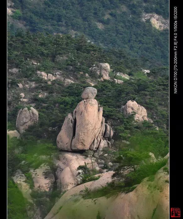 五莲山宝葫芦石,两块巨石紧密相连,浑然一体,构成了宝葫芦的形状,葫芦嘴清晰可见,看到这里,除了赞叹,真的没有其他话说哇。