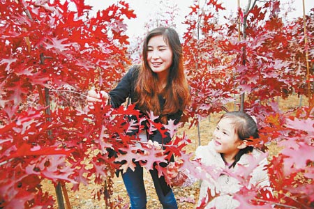 11月20日,市民在日照金枫园林科技有限公司欣赏火焰红栎。近年来,面对苗木产业产能激增、需求萎缩、市场低迷的严峻形势,东港区南湖镇逆势而上,突出抓好龙头基地培植、科技创新、品牌建设等措施,不断提升产业档次和质效,取得了良好的生态、经济和社会效益。 截至目前,该镇苗木总面积达1.6万亩,苗木标准化基地22处,规模以上苗木龙头企业(合作社)23家,苗木培育研发中心6个,苗木产业年产值超过15亿元。先后被授予“山东省龙柏苗木之乡”“山东省苗木百强镇”等荣誉称号。
