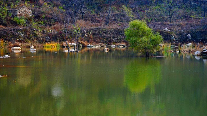 “木叶落已静,乾坤欠萧瑟”,青山迎客水传情,此情此景让人分外感怀。