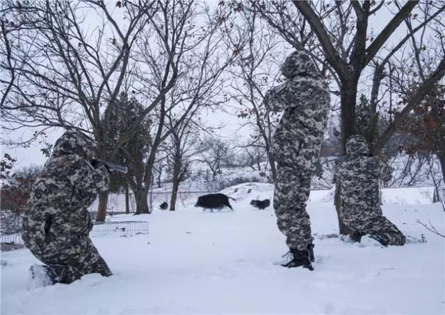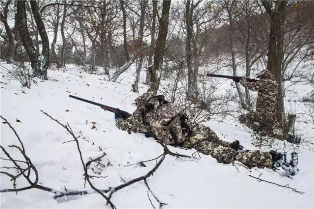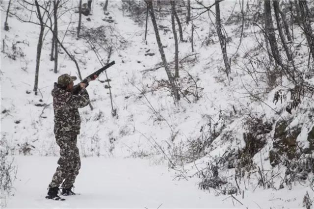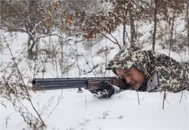 拉开枪栓举枪弯着腰慢慢移动脚步行进,50米、30米、20米,再也控制不住内心的激动,照准山鸡的脑袋扣动了扳机!山鸡应声倒下,随即雪地上留下几滴血迹。