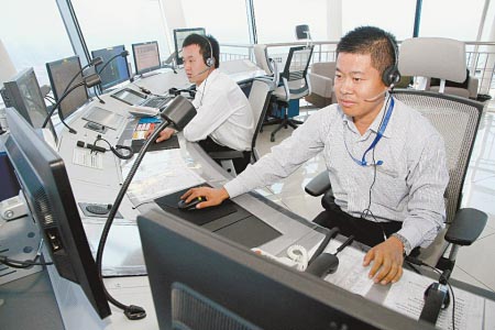 11月30日,在日照山字河机场塔台,地勤工作人员正在为通航做准备工作。 日照山字河机场将于12月22日正式通航,由中国东方航空A320执飞的上海(浦东)—日照—大连航线航班首航。日照机场的建成通航,对构筑日照综合交通运输体系,进一步改善投资发展环境,扩大对外开放,加快建设海洋特色新兴城市具有重大意义。