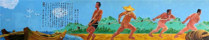 “羞山不羞海”,这是日照沿海的老话,说的是拉筰时渔民都一丝不挂。那年代穷,布金贵。筰网是一种近海捕鱼用的围网,分大筰、小筰,清乾隆年间的大筰网高11米、长136米,绠绳30盘,每盘102米,百余人才拉得动。拉筰需筰网一套、舢板两只,场地多是海底平坦的沙质地海域,一天拉两次,涨潮时叫拉满潮,落潮时叫拉枯潮。鱼货多时还可拉截网。20世纪50年代,刘家湾曾一网拉过8000多斤黄鱼。传说乾隆南巡时曾专门来日照看拉筰。