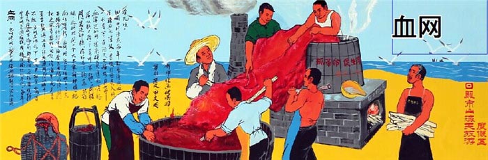 血网,也叫染网,就是用猪血定期浸染的渔网。在渔网是用麻线或棉线编结的年代,每年春天,渔网下海前都要做一次防腐维护。不然,渔网在海水中十几天就会长海苔。夏季如果遇上连阴天,渔网无法晒干,就更容易霉烂。因此,沿海先民在千百年的捕鱼实践中琢磨出用猪血染网防腐的方法。