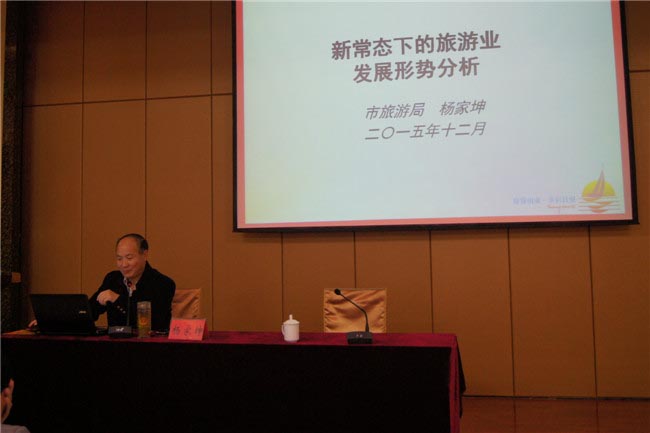 12月16日上午,由日照市旅游局承办的2015全市乡村旅游从业人员培训班在海天大酒店正式开讲。市旅游局副局长、党组成员杨家坤出席培训现场。