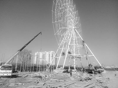近日,一个伟岸的摩天轮高高矗立于沭河乐园内,安装工人正在紧张地施工。据悉,“沭河乐园”是由江苏泰海投资发展有限公司与日照益通置业有限公司合作开发的大型主题公园,项目计划总投资3000万元。园内将先后建设摩天轮、儿童过山车、立环跑车、豪华转马、海盗船、太空漫步、探险城以及嘉年华等20余个娱乐设施,届时,乐园将成为莒县沭河公园一大景观亮点,可以吸引大量周边游客,提高莒县知名度。
