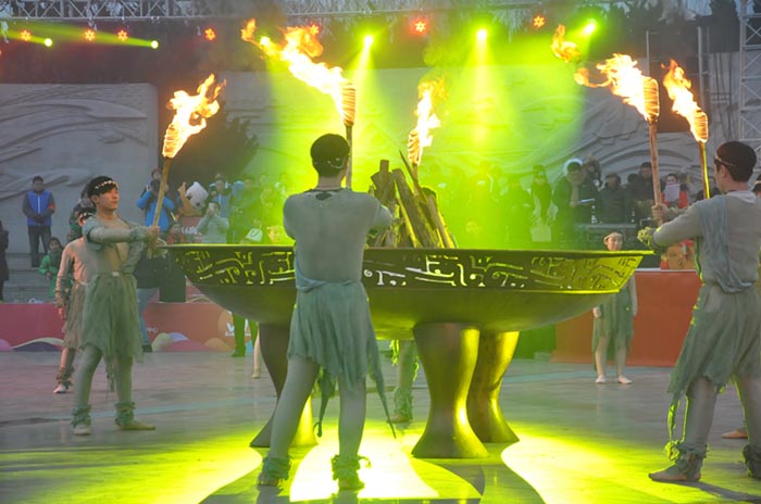 一、穿越时空的表演,让一脉相承的太阳文化崇拜贯穿始终。活动精心设计的燔柴乐舞、祭天祀日等远古时期极具代表性的仪式与扫一扫迎大奖、快闪表演等时代气息十足的活动相互穿插、交融。燔柴乐舞环节,伴随着由500个号角吹奏出的乐曲,巫师带领人们载歌载舞,迎接太阳的升起;祭天祀日环节,皇帝带领文武百官在祭坛前颂读祭文、拜日祈福,重现古代的人们太阳崇拜的场景;圣钟祈福环节,将时空拉回现代,敲响太阳圣钟,现场观众共同感恩太阳,祈祷国泰民安;时空交错中体现出自远古到现代一脉相承的太阳崇拜。
