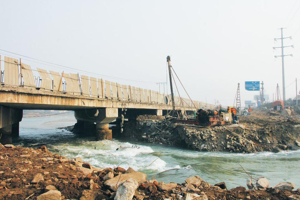 记者在疏港大道204国道以东段改建工程韩家营子桥工程现场看到,已拆除半幅桥梁,正在如火如荼地进行桩基施工,目前完成投资800万元,预计春节前完成南半幅桩基浇注施工。