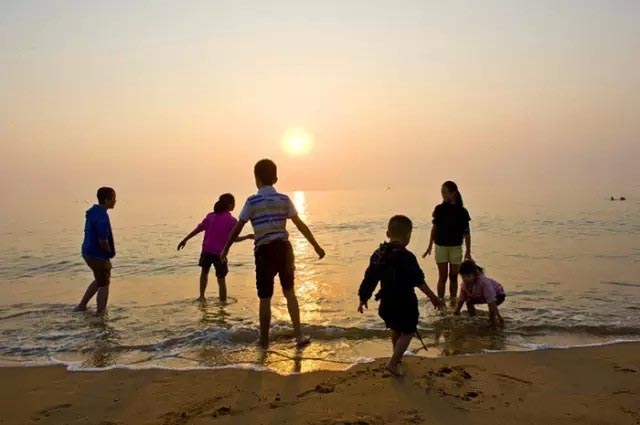 海面辽阔,白帆点点,海浪逐沙滩;海鸥低飞,蓝天白云,相映成辉。最好的时光就是与大海相伴,赤脚踩在沙滩上,心也变得柔软。蓝天、碧海、金沙滩,这里是日照;