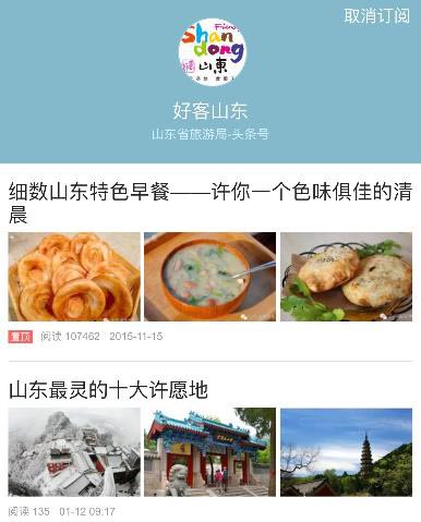 “好客山东”获2015年度“最具影响力旅游头条号”荣誉(2016年01月19日)