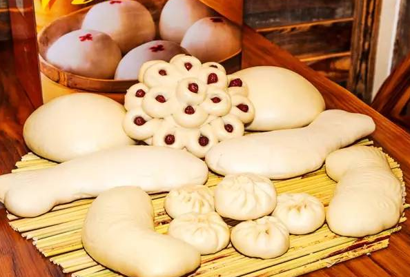 馒头是中国人喜事的必备,不管是结婚喜宴还是过年饭宴都不曾缺席。馒头呈鱼形象征着年年有余,花样枣馒头寓意吉祥如意。花馒头制作过程繁杂辛苦,这些大馒头花样多,寓意好,带回家,小朋友爱吃,老人省心省力看着也欢喜。