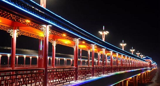 漫步桥上,可欣赏古色古香的建筑,可吟咏文采飞扬的楹联,可拍摄美轮美奂的照片,凭栏远眺,沭东美景尽收眼底。