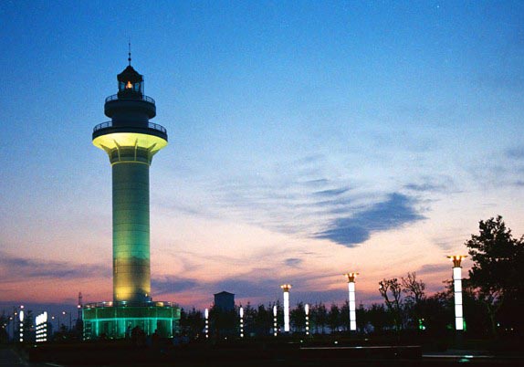 日照灯塔是日照海滨港口城市的象征。此地无不显示日月同辉的景观,形成了独具特色的集人文、自然于一体的休闲旅游环境,每年吸引着数百万的游客前来消暑度假,观光游览。