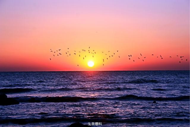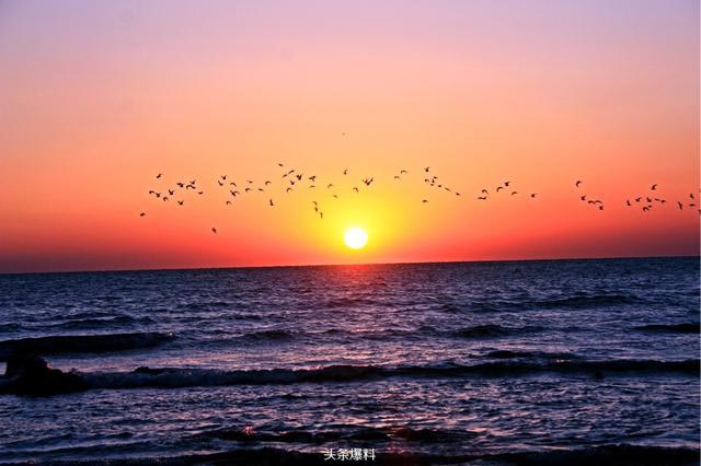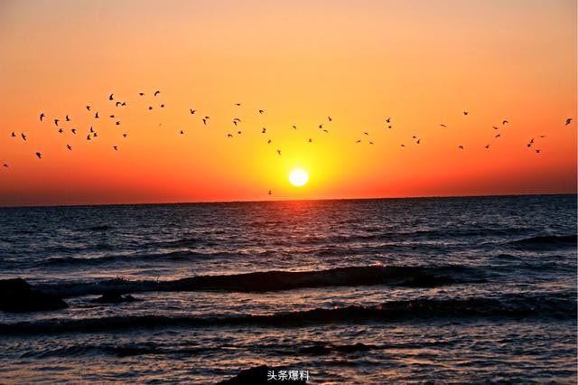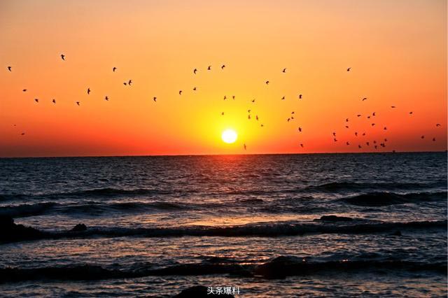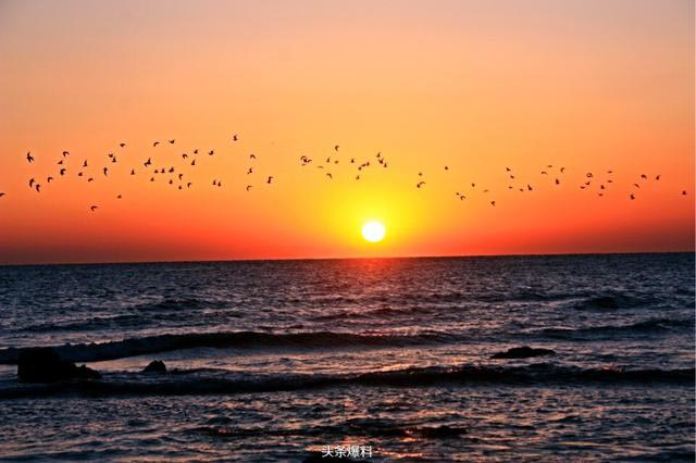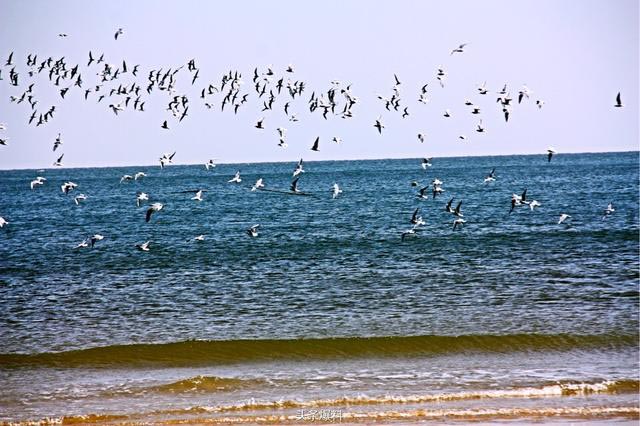 2月29日,日照太公岛,几百只海鸥迎着日出自南向北飞翔,甚是壮观!