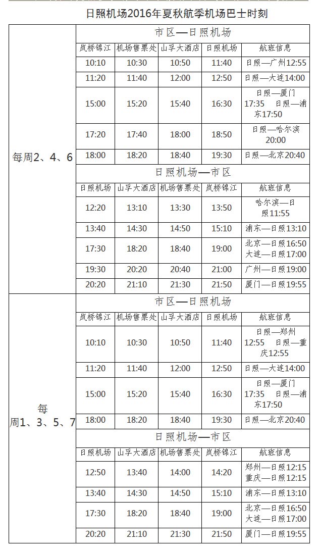 日照机场免费巴士活动延长至10月29日(2016年03月13日)