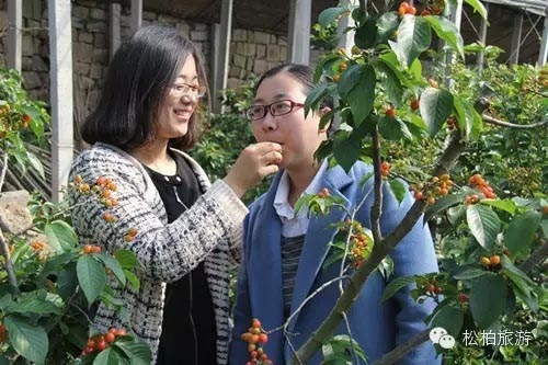 这里远离城市的喧嚣,流连于枝头挂果的樱桃林中,大家其乐融融,可尽情享受这份难得的恬静。