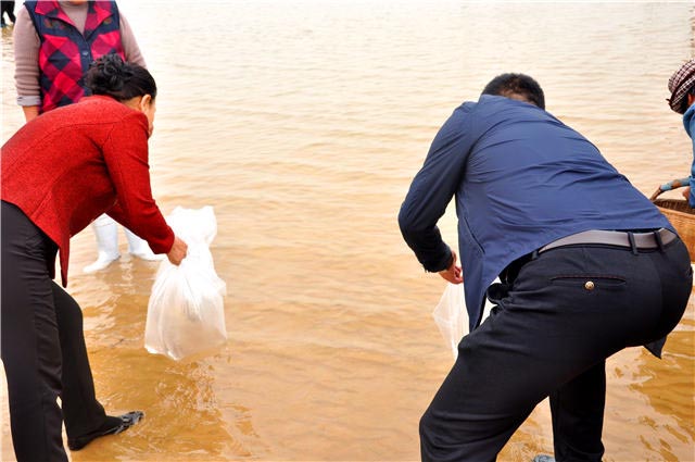 出席领导一行与千名网友一起参加千人“放流”活动,同时号召参与者及时将包装袋带走,避免环境污染,爱护大自然,人人有责。
