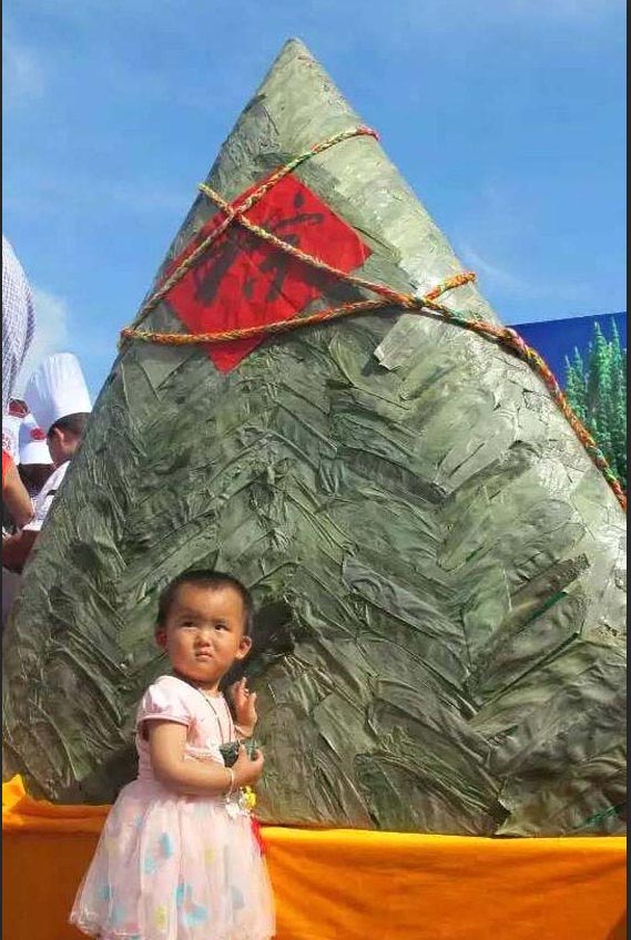 在红餐厅广场处,摆放“超级大粽子”供游客食用,粽子一起吃,才够味;