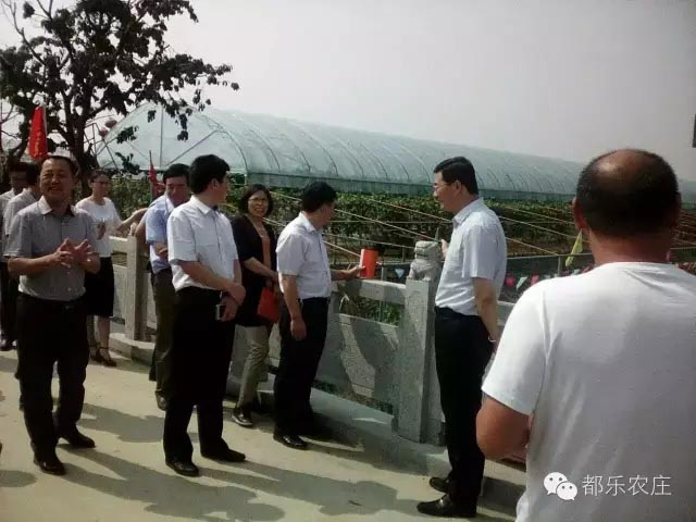 六月九日上午,全县重点旅游项目现场推进会走进都乐农庄;都乐农庄生态采摘园在各级政府领导关怀支持下经过两年得发展已初具规模;上午九时县政府县长,旅游局、农业局、水利局、林业局、国土资源局、财政局、环保局、住建局主要负责人,各乡镇主要负责人,全县各景点主要负责人来到了都乐农庄现场检查指导!