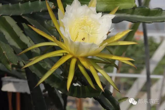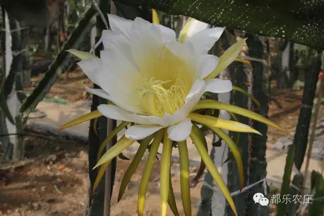 清新淡然得火龙果花朵,亲!抽空可以来都乐农庄目睹一下它的风采!