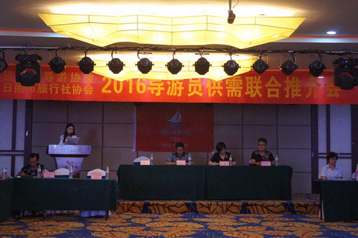 进入6月中旬,日照旅游旺季大幕即将拉开,为积极响应我市“旅游富市”战略,帮助协会会员提供更多的就业机会,更好地为旅行社服务,6月17日下午,日照市导游协会联合日照市旅行社协会举办了2016导游员供需联合推介会。日照市旅行社协会会长张栋梁、日照市导游协会会长张山华出席会议,日照市20家旅行社负责人、日照市导游协会全体会员等共200余名旅游业界精英参加了推介会。