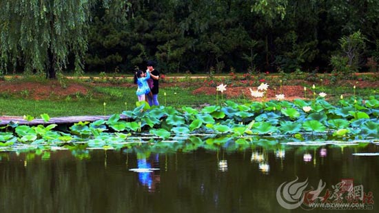 荷香氤氲雾来绕 (赵新 摄) “接天莲叶无穷碧,映日荷花别样红”,阵雨过后,不仅为日照森林公园带来清凉,河畔的荷花迎着雨丝摇曳,雨滴在翠绿的叶面跳跃,粉红色的花瓣在绿叶的环抱中更显娇嫩。 森林公园荷花分布很广,沿着河畔一直绵延几公里,非常壮观。现在是观赏荷花最好的时候,建议大家每天上午去,去晚了花朵就闭合了。 临近周末,在森林公园,不少市民漫步在栈道上欣赏夏日荷塘景致。