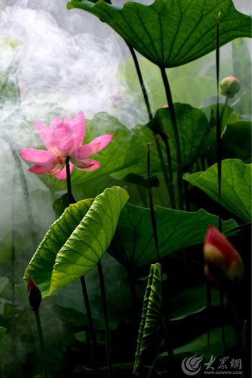夏雨荷韵 (李冰 摄) 一段荷塘 (李冰 摄) 小荷尖尖 (李冰 摄) 荷垂碧影 (李冰 摄) 荷花带雨 (李冰 摄) 梦幻荷池 (李冰 摄) 烟笼风荷 (赵新 摄) 荷香氤氲雾来绕 (赵新 摄) “接天莲叶无穷碧,映日荷花别样红”,阵雨过后,不仅为日照森林公园带来清凉,河畔的荷花迎着雨丝摇曳,雨滴在翠绿的叶面跳跃,粉红色的花瓣在绿叶的环抱中更显娇嫩。 森林公园荷花分布很广,沿着河畔一直绵延几公里,非常壮观。现在是观赏荷花最好的时候,建议大家每天上午去,去晚了花朵就闭合了。 临近周末,在森林公园,不少市民漫步在栈道上欣赏夏日荷塘景致。
