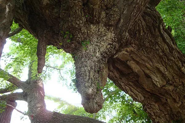 很久很久以前,有个大财主雇了个木匠,夜里来偷这树上的一个瘿。锯了一夜,瘿只剩一点皮连着树干,可是怎么也锯不下来。天亮了,只好住手,躲了起来。第二天夜里,他又带着木匠来锯,没想到,头天夜里锯开的地方都已经长好了,象是没锯过的一样。只好重新再锯。锯到天亮,还是只差一点树皮连着,锯不下来。又只好住手,躲了起来。
