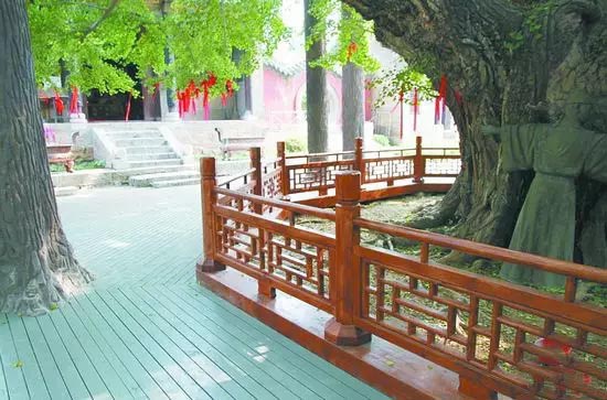 ▲为保护"天下银杏第一树"四周设置护栏,铺设木栈道地面