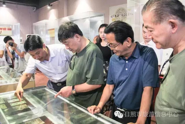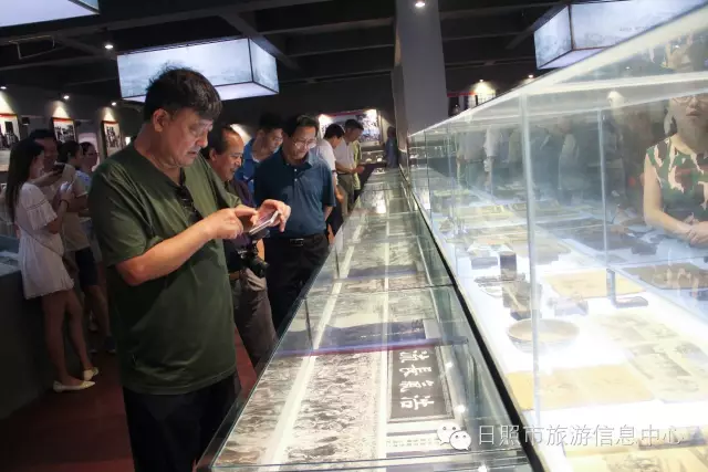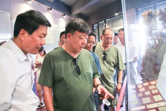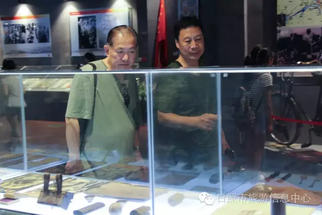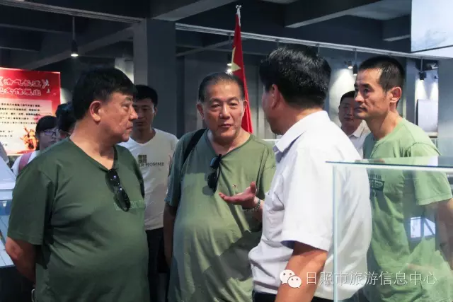 7月24日下午,革命家朱德元帅外孙刘康同志及其夫人左焕、张治中将军之孙张皓霆同志及其夫人陈金秀、黎玉之子黎小弟同志、牟宜之子牟广丰同志、陈昌之子陈龙狮同志、央视记者王旭东来到日照市抗日战争纪念馆考察。日照市旅游发展委员会副主任禚磊、日照市委党史研究室副主任尹德满陪同。日照市抗日战争纪念馆馆长刘军华做全程讲解。 刘馆长对到访的贵宾详细介绍馆内收藏品 刘馆长与到访来宾敲响状元锣,共同祝愿美好生活。 革命家后代对抗日战争纪念馆的红色教育给予肯定,并表述了自己独到的见解,提出了宝贵建议。 夏令营的小朋友们也在馆内参观 日照市抗日战争纪念馆内陈放的部分收藏品 来宾合影
