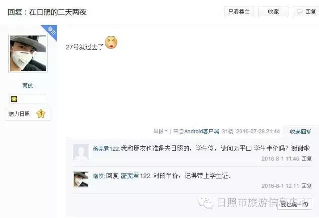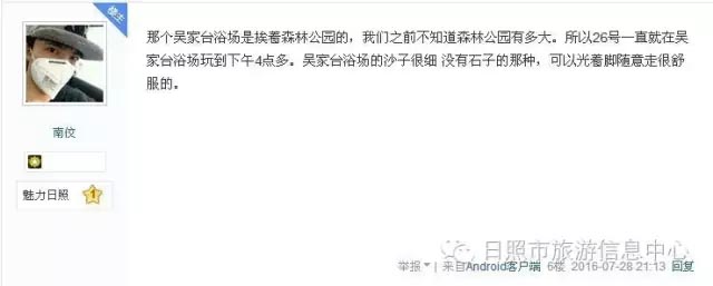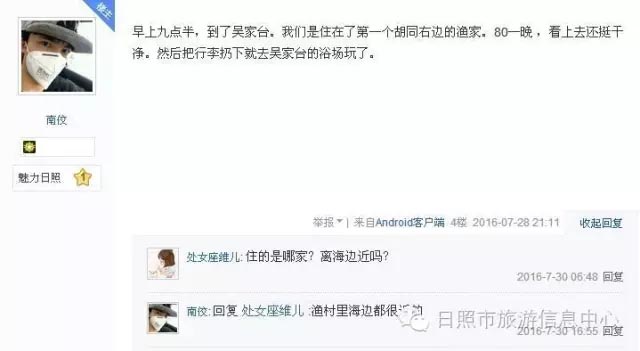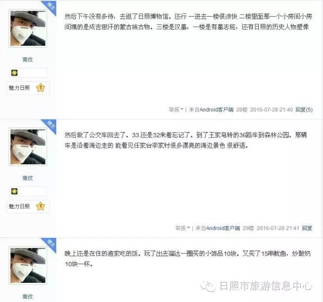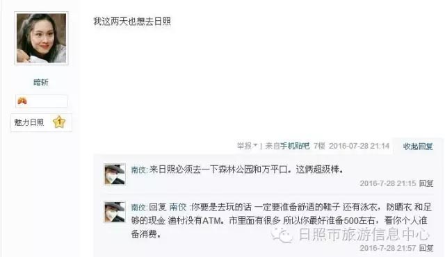 近日,小编在浏览贴吧时,发现一枚暖男楼主,在回程的火车上写了在日照旅游的三天两夜旅程,语言朴实,攻略实用,并一一回复了网友的疑问。以下是部分贴吧截图,是不是暖男气质满屏? △26号行程 △27号行程 △28号行程 以下是回复网友疑问的细心解答 点击查看贴吧
