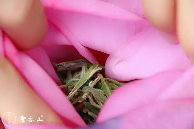 茶窨花香的二十四小时后,就可以取出荷花中的茶了。当然,也可把茶如此反复,连续窨制两到三遍,让清幽的荷香窨到茶的骨子里。