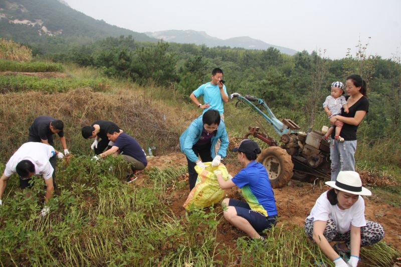 郑燕是碧波大酒店餐饮部主管,近期因为家里父母忙于秋收,两个年幼的孩子无人照顾而发愁。得知这一消息后,2016年中秋节期间,碧波大酒店领导与职工一行15人组成助收小分队,一大早便来到南湖镇郑燕的家,帮助她们秋收花生。