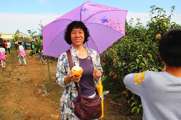 随后大家组织来到山脚下的叩官镇丰水梨园进行了采摘体验。老人孩子纷纷参与其中,亲手摘下秋天的果实,吃起来也格外的甜美可口。