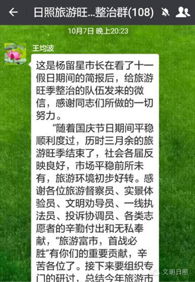 自媒体时代,人人都可以是记者,媒体监督的力量必不可少。日照市一方面鼓励群众“随手拍”等活动,同时组织多家新闻媒体记者,并建立微信群,分专题对各牵头单位旅游市场综合整治工作落实情况进行采访,发现问题及时解决,他们被形象的称为“媒体监督员”。