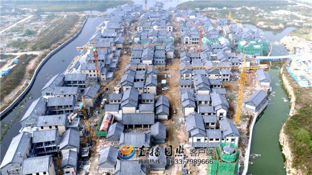 航拍建设中的日照东夷小镇 建筑群气势尽显(2016年10月22日)