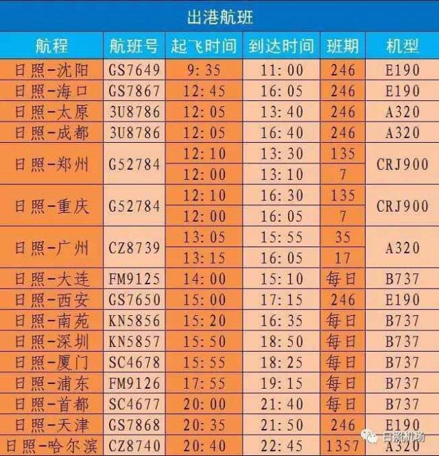 准备去天津的注意啦 日照机场航班时刻有调整!(2017年01月13日)