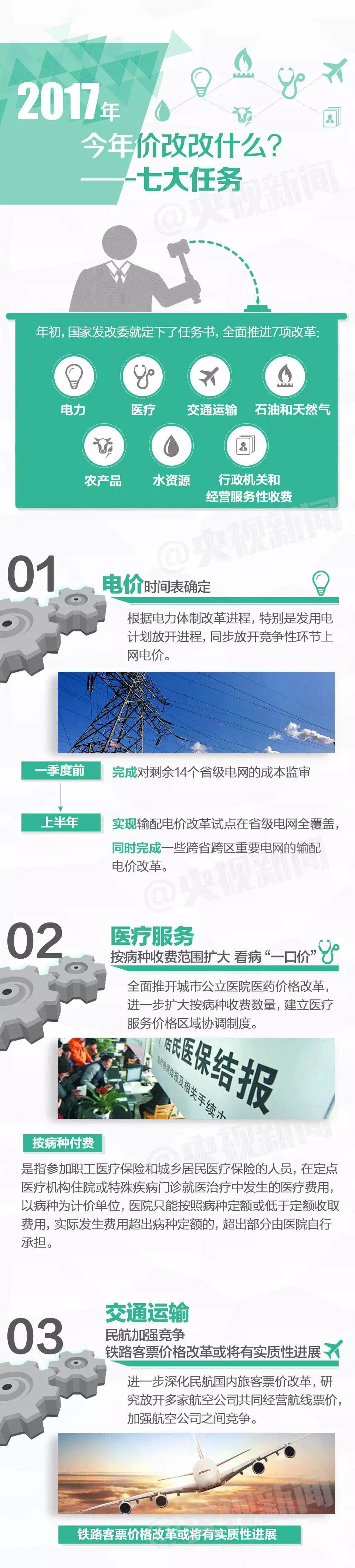 作为经济体制改革的重要组成部分, 2016年价格改革重点突破,电力、天然气、医疗服务、交通运输等领域的改革都成果卓然。2017年是价格改革决战攻坚的一年,新年初始,七项改革任务已经全面启动:水、电、天然气、粮食、医疗、交通、经营服务性收费,七大领域价格改革与你的生活息息相关。