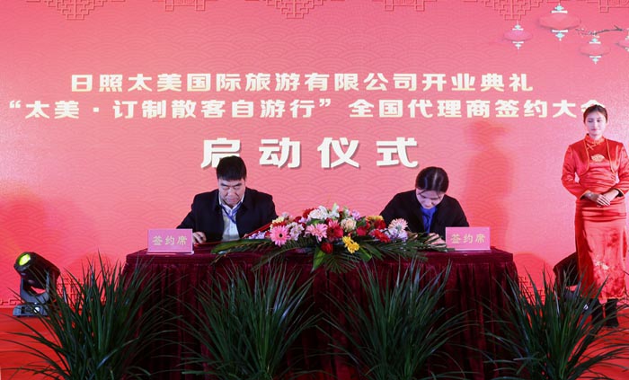期间,太美国际旅游有限公司分别与中国风向标旅游联盟、青岛铁路国际旅行社签订战略合作协议,同时与万平口风景区、日出东方·海之秀分别签订合作协议,并现场购买了两个景点总价值200万元的景区门票。