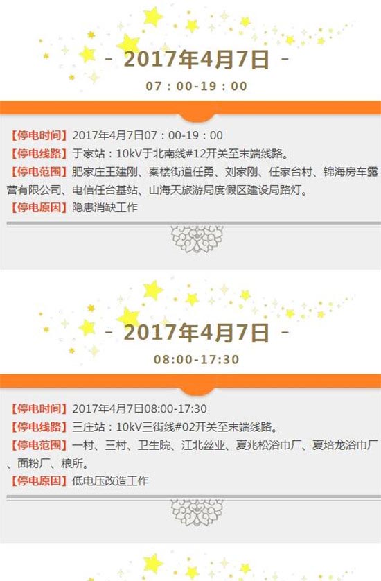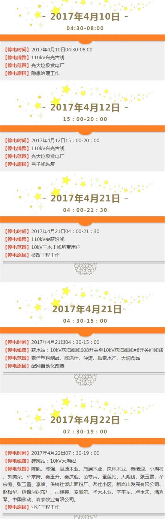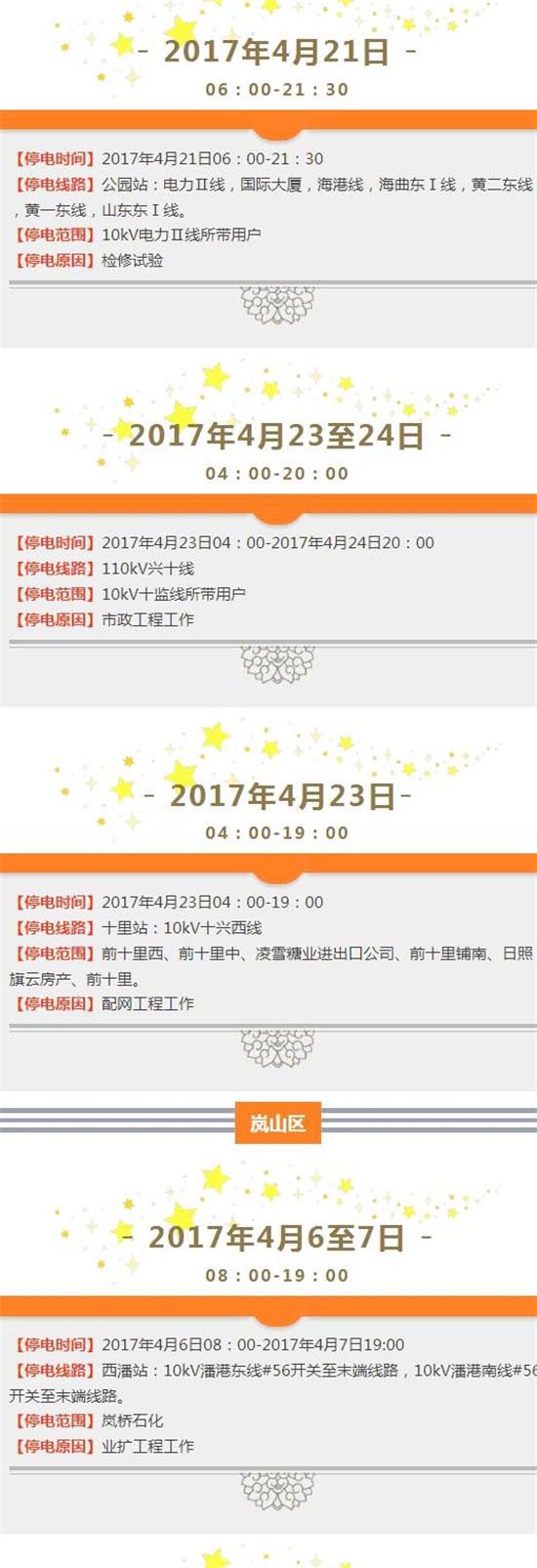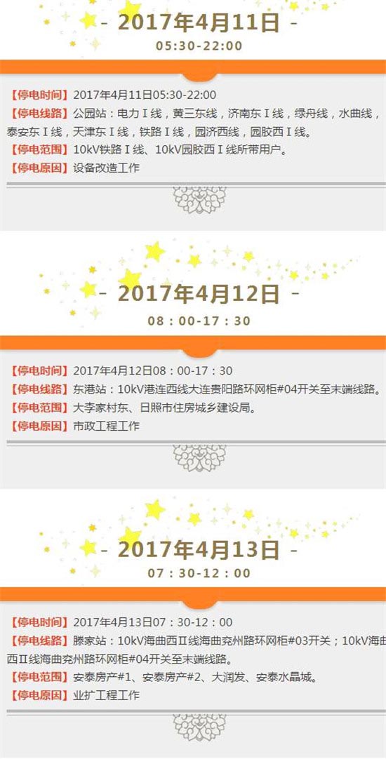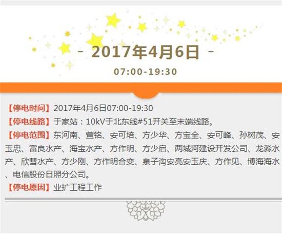 日照4月份停电信息,看看有你家吗(2017年03月31日)