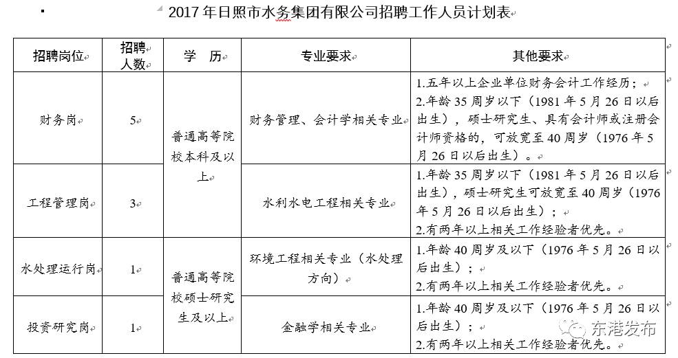 日照市水务集团有限公司是经市政府授权批准经营城市涉水事务的公益类国有独资公司。下设投资运营有限公司、供水有限公司、污水处理有限公司、日照市第一轻工业公司4个子公司,内设11个业务部室和三个直属部门,资产总额约28.35亿元。根据集团发展需要,现面向社会公开招聘10名工作人员。