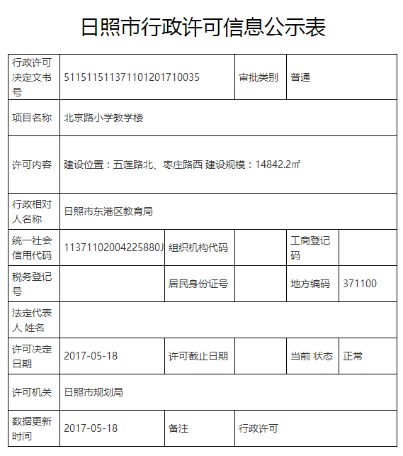 北京路小学的建设一直是市民关注的热点问题,近日,日照市规划局发布了北京路小学教学楼许可信息公示表。