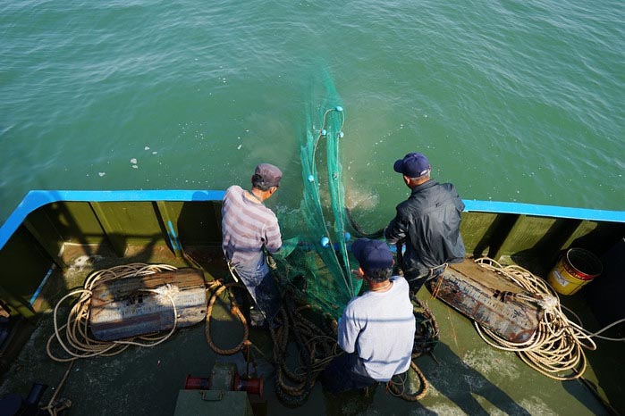 虽然这只是给游客游览观赏的游船,但是捕鱼的过程是和真正的渔船一样的,捕鱼的人也是海边真正的渔民。这船是可以出海的旅游观光渔业捕捞船,附近的桃花岛和张家台也有,坐着既舒服,又能体验真正的出海。