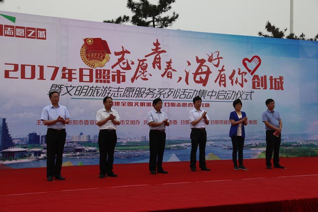 2017年6月10日上午,2017年日照市“志愿青春 海好有你”创城暨文明旅游志愿服务系列活动在万平口景区正式启动。