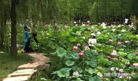 观看荷花的石头栈道、木栈道,池中还有休息厅