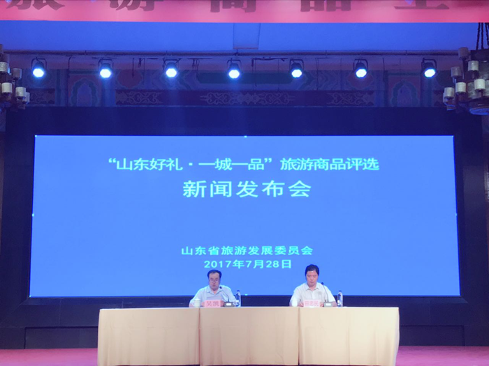 7月28日,首届“山东好礼·一城一品”旅游商品评选活动新闻发布会在泉城欧乐堡旅游度假区举行,“一城一品”旅游商品展同期举行。山东省旅游发展委员会副巡视员王春生,中国文联民间文艺艺术中心主任徐岫娟,德州市人民政府副市长商怀君,山东省旅游商品开发服务中心主任田忠民,各市旅发委(局)分管领导、全省重点景区代表、高校及研发单位代表以及省内主要媒体参加本次发布会。