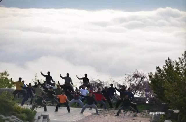 我们在云雾里习练着陈式太极拳实用拳法,真的和在仙境里一样,欣赏的眼前漂亮的云雾,漂来跑去。一会包揽着山顶,一会有缠绕着山腰。真是“无山不飞天,无云不绕山”。云山雾海壮丽多变,气势磅礴。我感叹于这大自然的神奇,也正是这云雾吸引了我,我喜欢大青山的云雾。